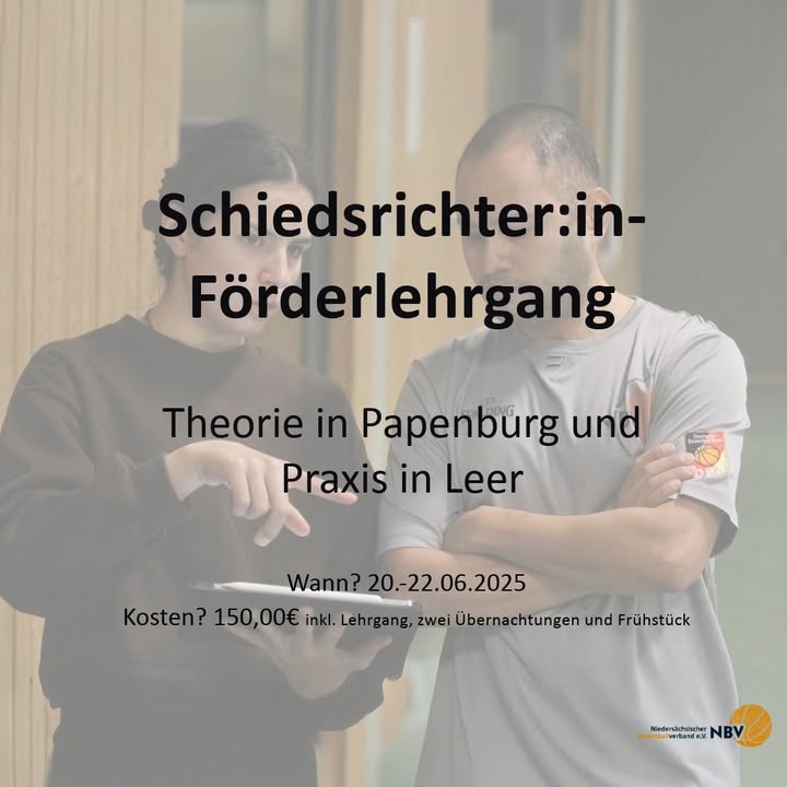 Für den NBV-Sommerlehrgang für Schiedsrichter:innen, vom 14. - 15. Juni in Rotenburg, haben wir noch ein paar Plätze frei. Nutzt die Chance und meldet Euch an.