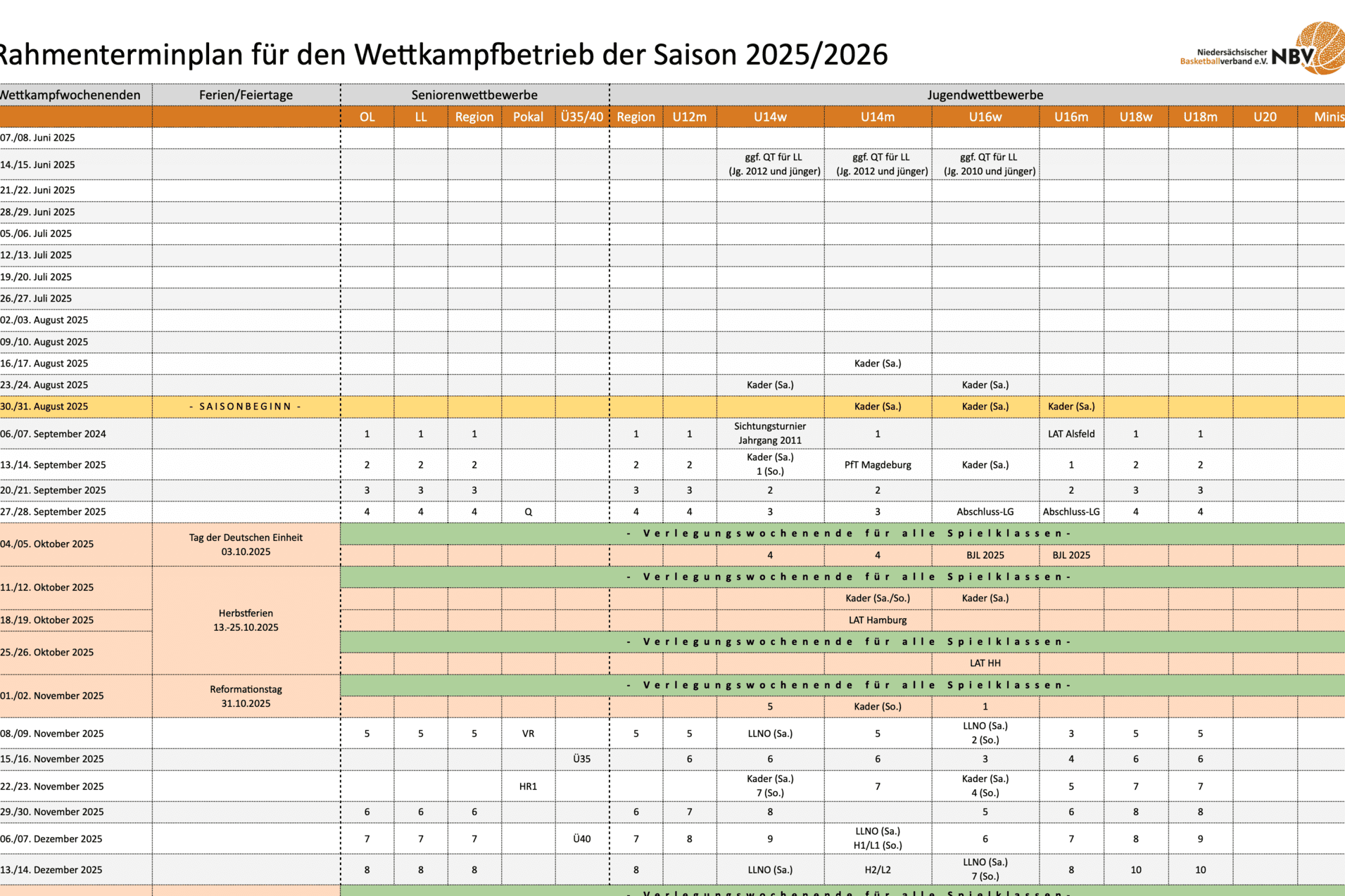 Bei der ersten Version des Rahmenterminplans fehlte in der Übersicht der 5. Spieltag für die Jugendligen in den Regionen und der U12-Landesligen. Der Spieltag ist für den 8. und 9. November 2025 vorgesehen.
